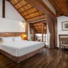Các phòng đều có mái tranh và nội thất gỗ, mang lại cảm giác mộc mạc cho phòng nghỉ. Tất cả các phòng đều có máy điều hòa, sân hiên và ban công riêng. Tủ lạnh mini và ấm đun nước cũng được bố trí trong phòng. Phòng tắm riêng được trang bị bồn tắm và vòi sen.
